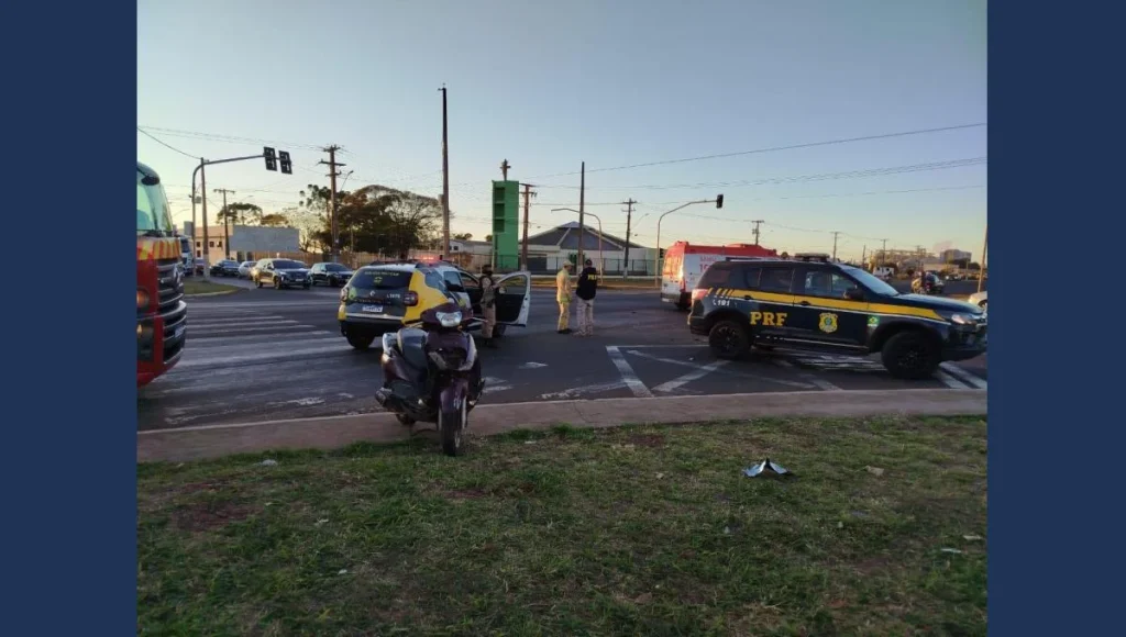 Na manhã desta terça-feira (12), um acidente do tipo colisão transversal envolvendo uma motoneta Honda Lead e um automóvel foi registrado em Rolândia. Segundo informações, um dos veículos teria desrespeitado a sinalização semafórica, provocando a batida.