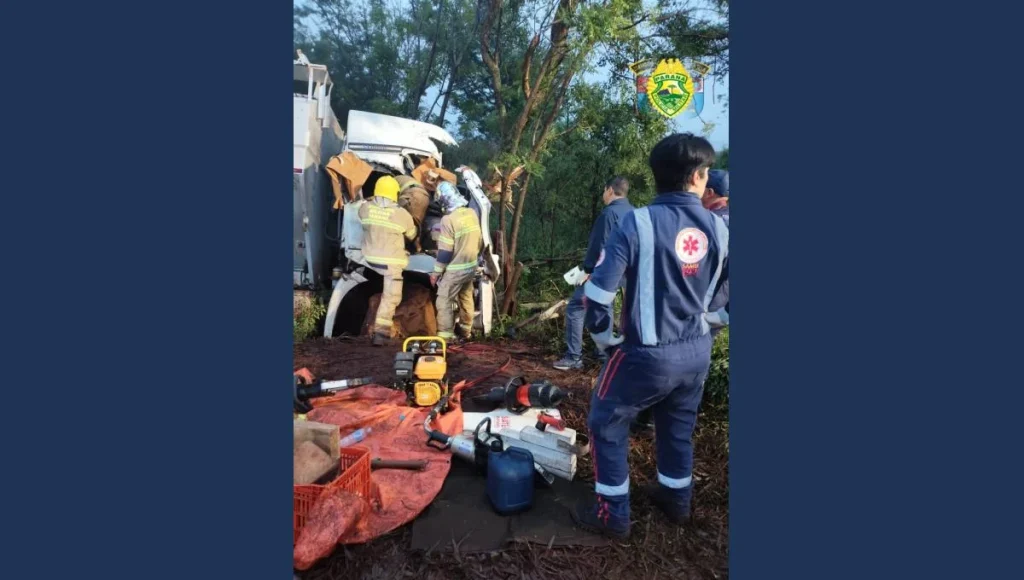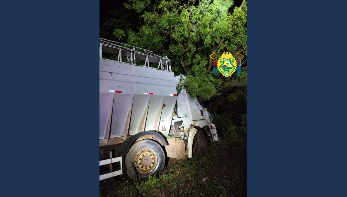 Na madrugada desta quinta-feira (07), às 00h28 um grave acidente foi registrado na PR-170, próximo ao KM 70, em Rolândia. Um caminhão VW 30.330 CRC 8×2, com placas de Apucarana, perdeu o controle e colidiu violentamente contra árvores à margem esquerda da rodovia.