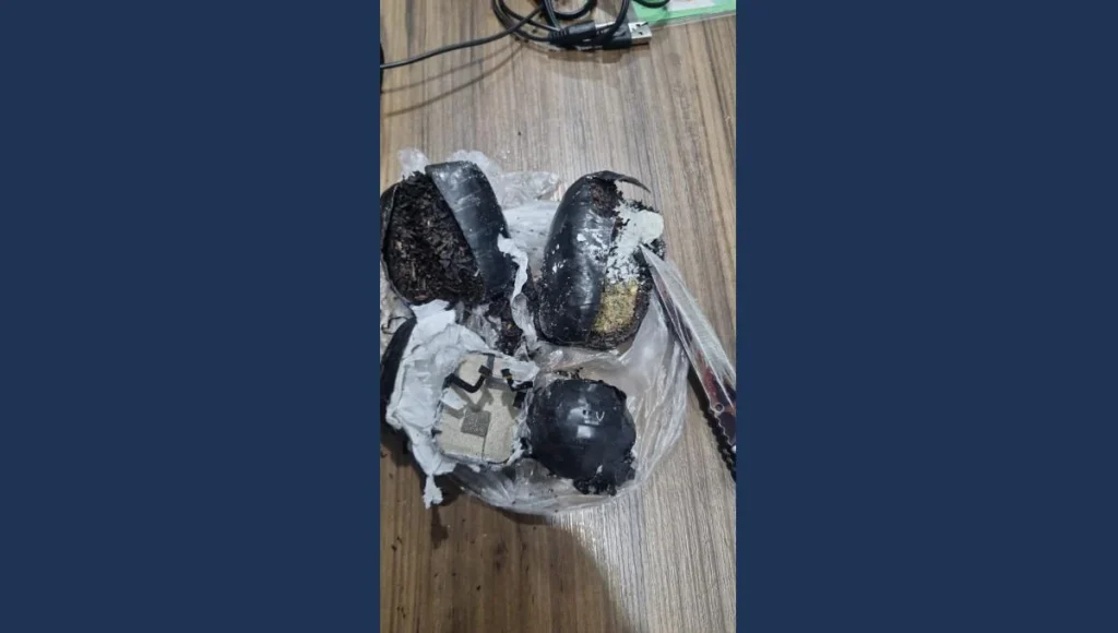 Entre os objetos apreendidos estavam substâncias semelhantes a cocaína, maconha, fumo e uma tela de celular, todos embalados em invólucro preto e fita isolante. A cocaína pesava aproximadamente 35 gramas e, devido à mistura com outros itens, não foi possível separar as substâncias.