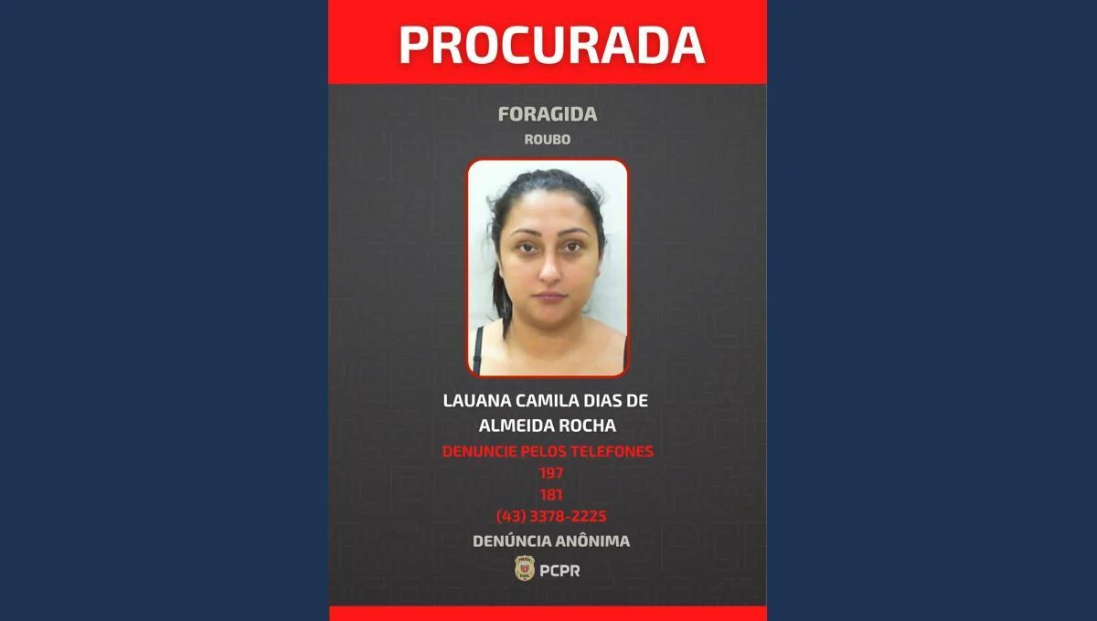 A Polícia Civil do Paraná (PCPR) prendeu preventivamente uma mulher, de 21 anos, pela prática do crime de roubo majorado praticado contra uma idosa, de 72, em Arapongas. A captura aconteceu nesta sexta-feira (14), em Londrina. Duas pessoas envolvidas com o crime estão foragidas.