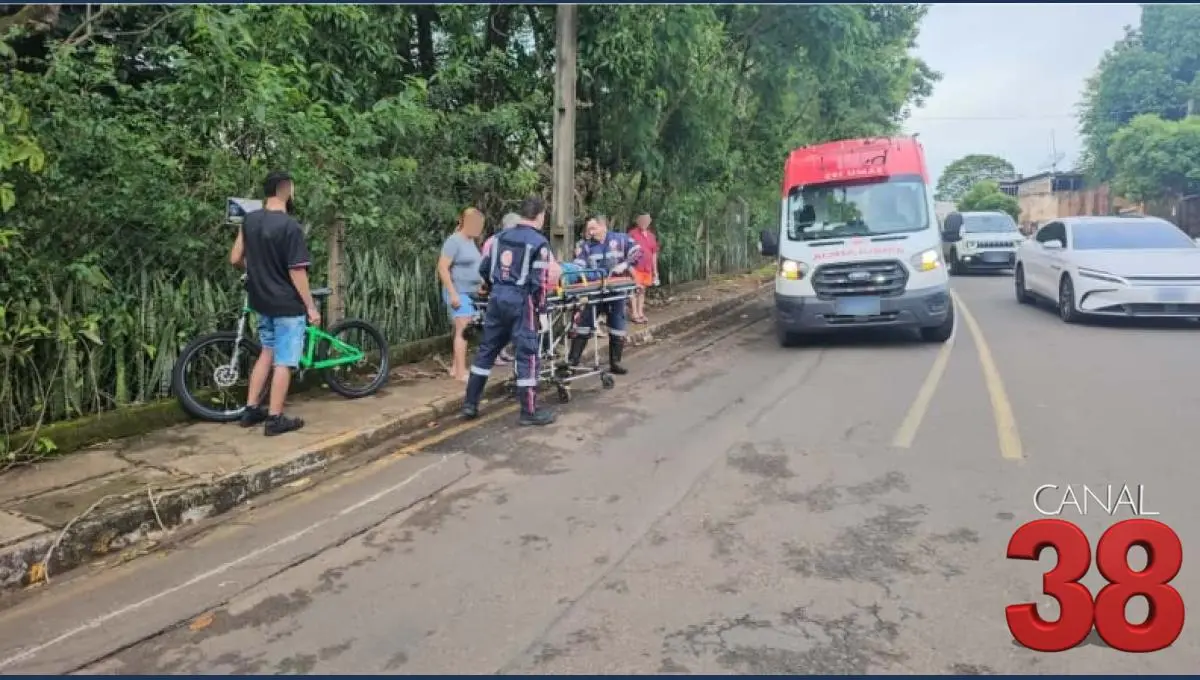 Um atropelamento por bicicleta foi registrado na tarde desta quarta-feira (5), na Rua Pavão, próximo ao Contorno do Bandeirantes, em Arapongas.