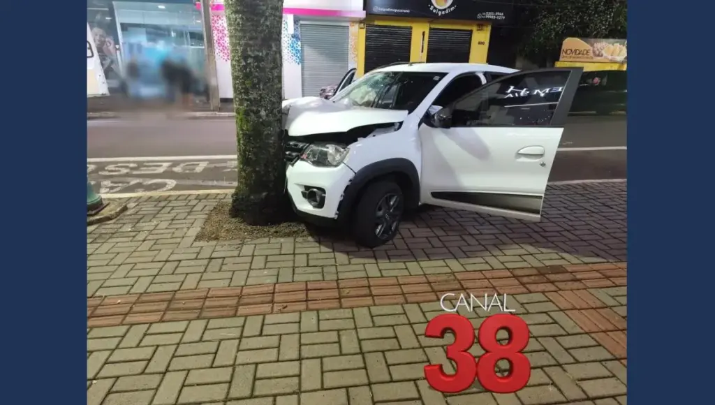 Um acidente foi registrado na noite desta segunda-feira (13), em frente ao edifício Palácio do Comércio, na Rua Dr. Oswaldo Cruz, em Apucarana.