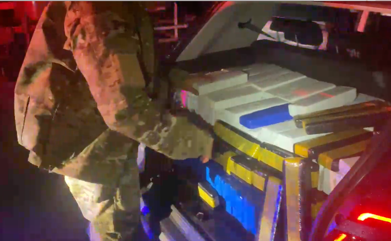 O carro era ocupado por duas mulheres que informaram que estavam levando droga de Foz do Iguaçu para Londrina. Dentro do veículo, que estava com placas falsas, havia 463 quilos de maconha e uma pistola calibre 45.