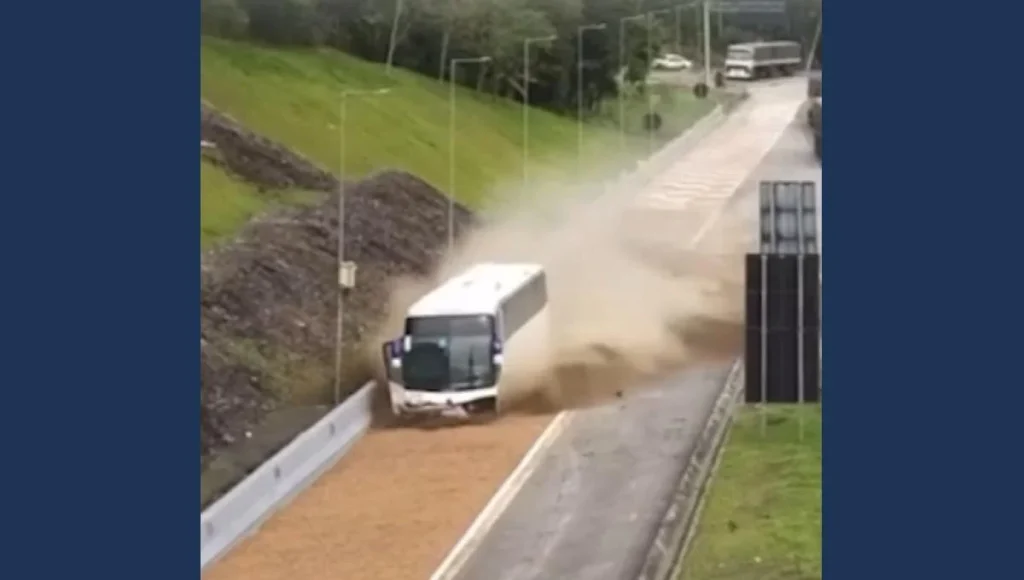 Câmeras de monitoramento da rodovia registraram o momento exato em que o ônibus entrou na área de escape, evitando uma tragédia de proporções maiores. Graças à ação rápida do motorista e à presença da estrutura de segurança, o pior foi evitado. A área de escape é projetada para desacelerar veículos em situações de emergência, como a que ocorreu neste caso.