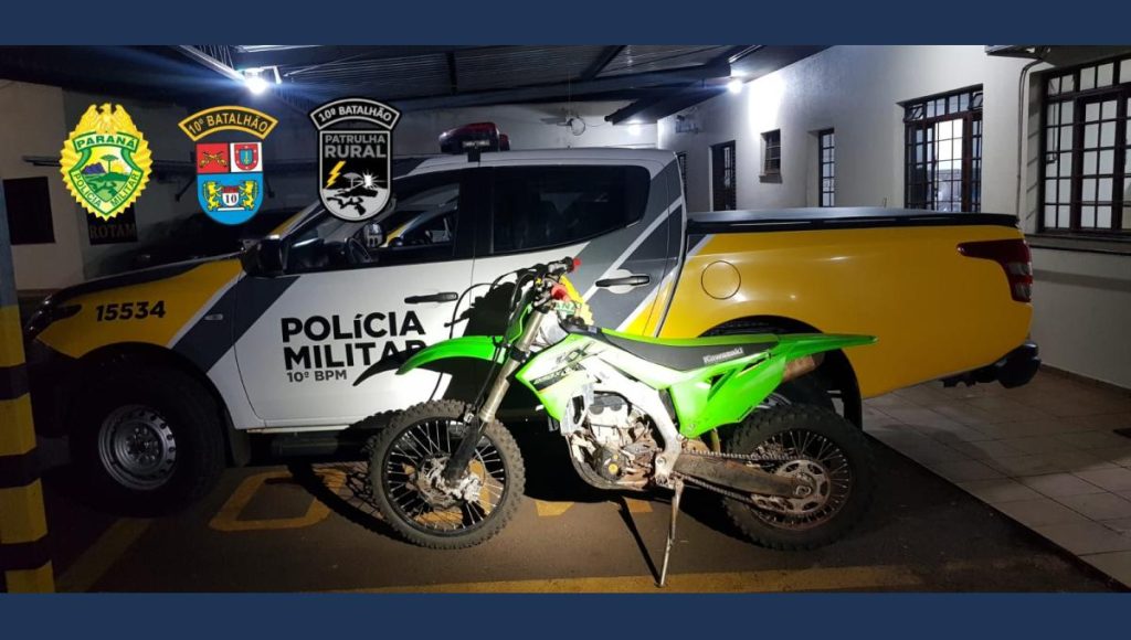 Entretanto, a motocicleta, uma Kawasaki modelo KX250X, chamou a atenção por não possuir placa de identificação e não estar cadastrada/registrada no órgão competente, impossibilitando a verificação de seus dados. Diante dos fatos, foram realizadas as notificações de trânsito pertinentes, e a motocicleta foi apreendida até a 2ª Cia PM de Jandaia do Sul.