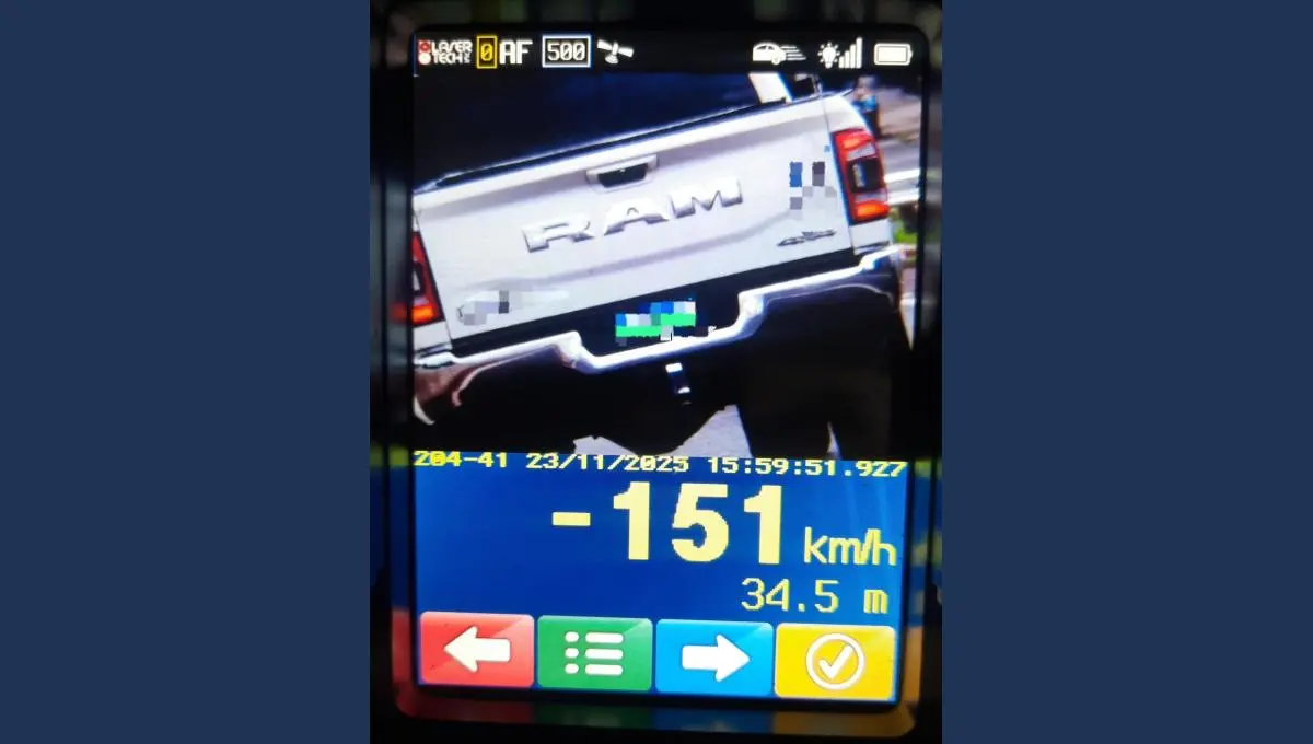 Um dos flagrantes de maior destaque ocorreu no domingo (23), na PR-445, em frente à UEL, durante o retorno do feriado. Uma caminhonete Dodge Ram foi registrada pelo radar em velocidade muito acima do permitido. O limite na via é de 70 km/h, e o veículo ultrapassou de forma significativa o valor regulamentado, segundo a polícia.