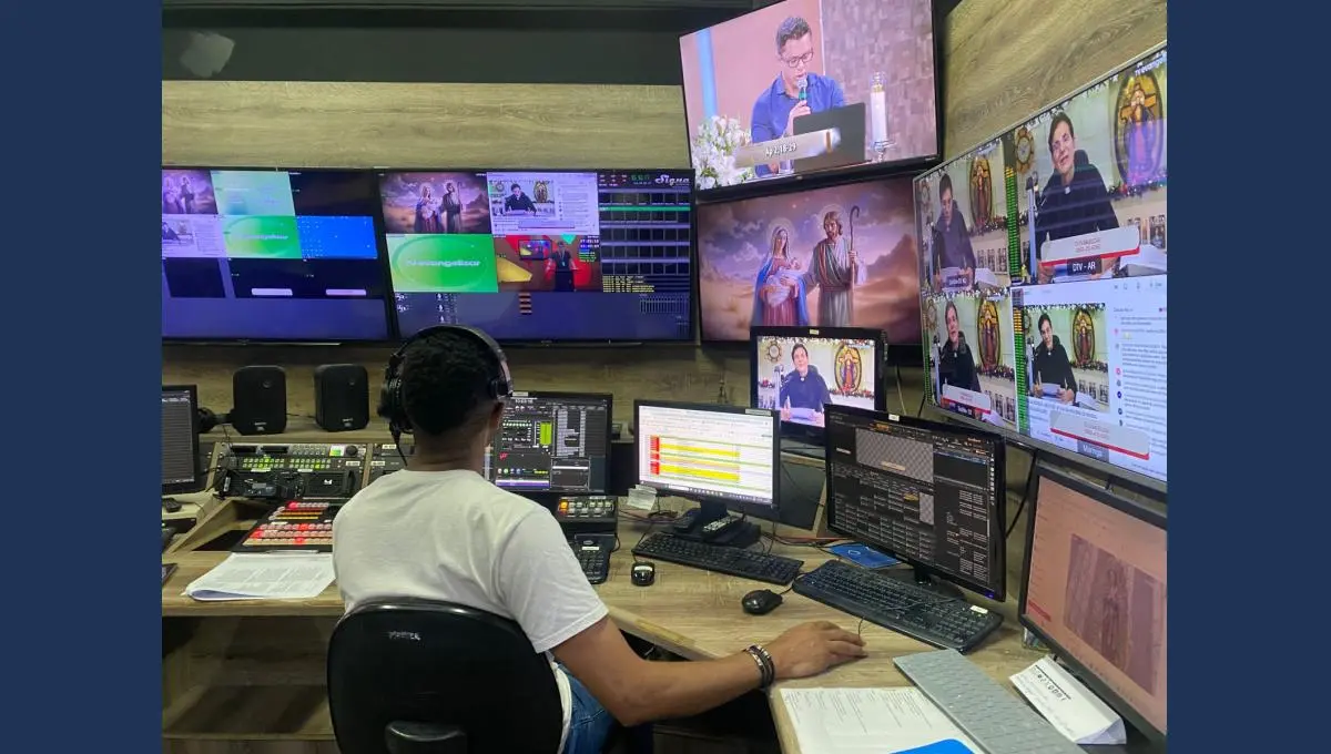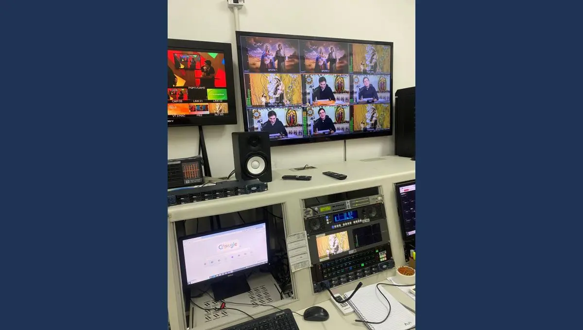 Durante a visita, Padre Douglas conheceu toda a estrutura da TV Católica, acompanhou os bastidores das produções e conversou com profissionais responsáveis pelos conteúdos que evangelizam milhares de fiéis em todo o país.