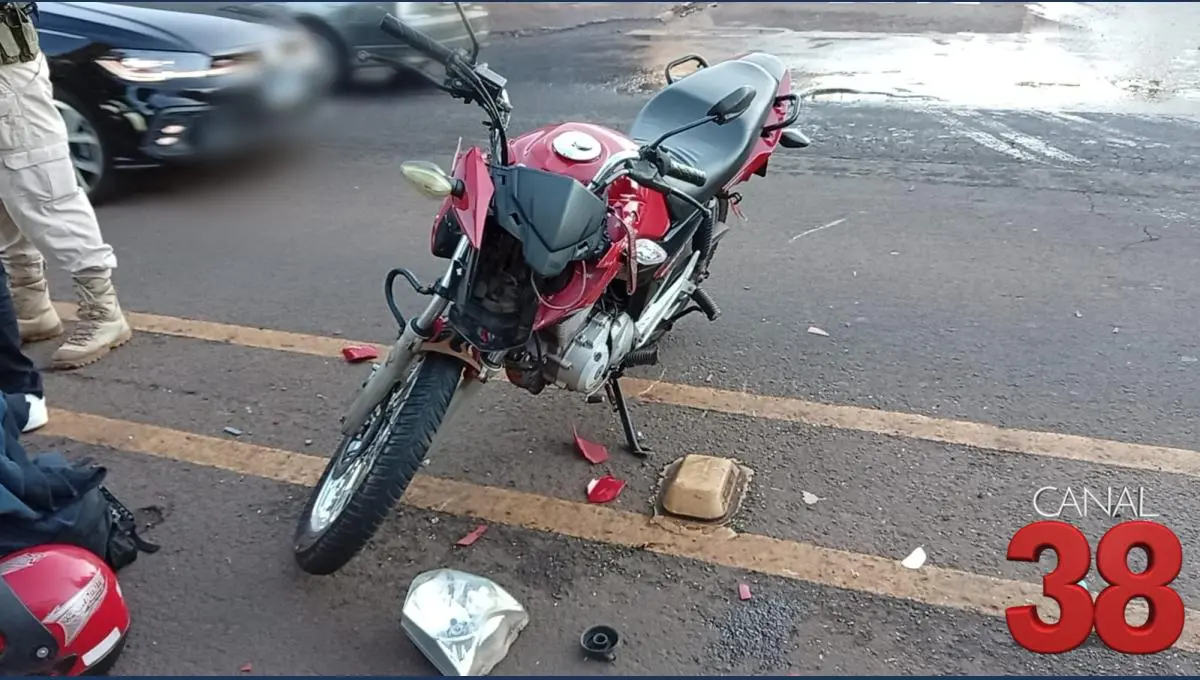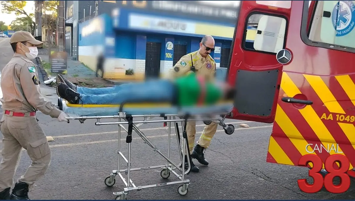 Uma colisão entre um carro e uma motocicleta mobilizou equipes do SAMU e do Siate na tarde desta segunda-feira (24), na Avenida Minas Gerais, em Apucarana.