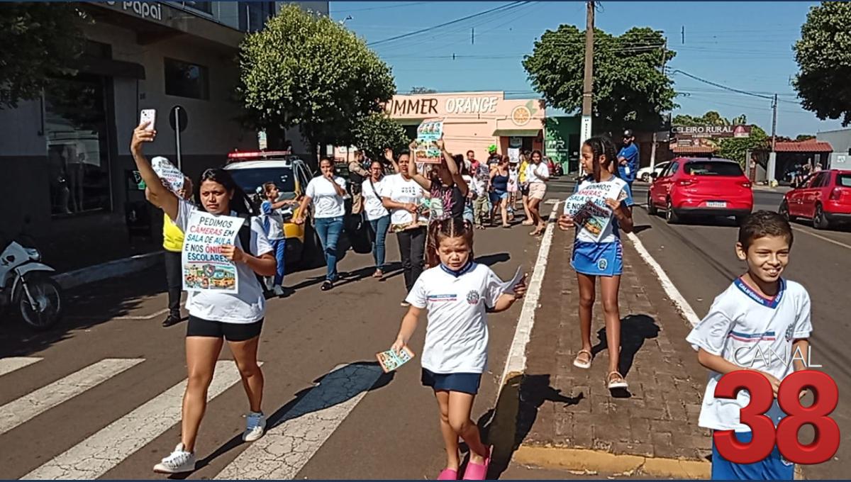 Pais de alunos, professores e vereadores participaram de uma manifestação pacífica na manhã deste sábado (21) em Califórnia, pedindo mais segurança nas escolas do município e melhorias nas condições da educação.