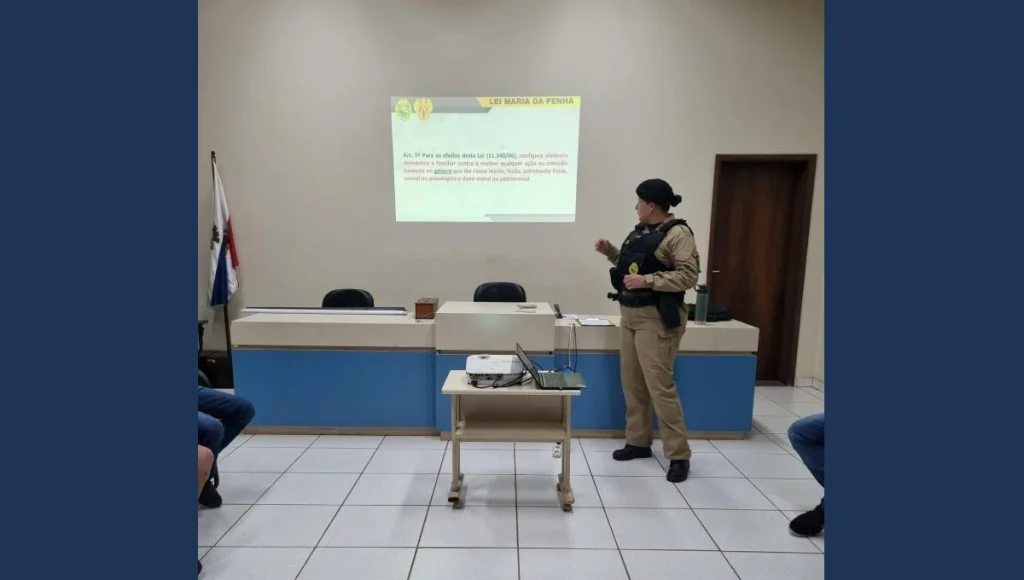 Na noite de quarta-feira (29), a equipe da Patrulha Maria da Penha, dentro das ações da “Operação Mulher Segura”, realizou a palestra “De Homem Pra Homem” no município de Marilândia do Sul. A atividade foi solicitada pelo Conselho da Comunidade e aconteceu nas dependências do Fórum da Comarca local.