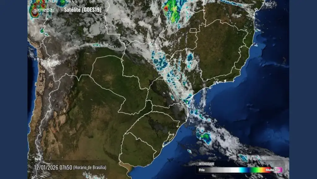 No oeste e sudoeste paranaense, o tempo tende a ficar mais estável, com variação de nuvens e temperaturas mínimas próximas dos 15°C. Já as tempestades devem se concentrar principalmente entre a tarde e a noite.