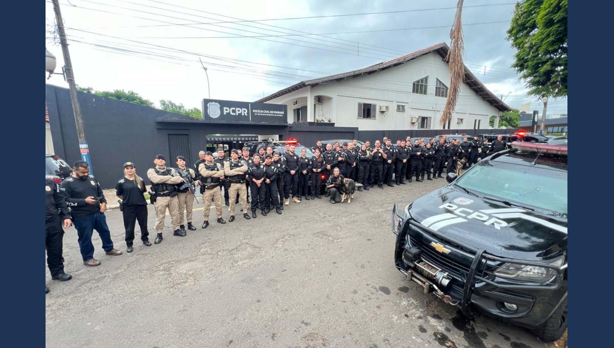 Para o cumprimento dos mandados judiciais, a operação mobilizou 74 policiais civis, com o apoio de 25 viaturas e suporte aéreo do Grupo de Operações Aéreas (GOA) da PCPR. A ação também contou com apoio da Polícia Militar do Paraná.