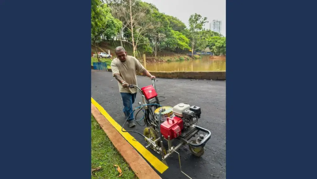 Uma equipe da Secretaria Municipal de Segurança Pública e Trânsito (SESTRAN) está fazendo nesta terça-feira, 18, a pintura da sinalização na pista de caminhada. Essas atividades devem ser concluídas nos próximos dias, se não chover.