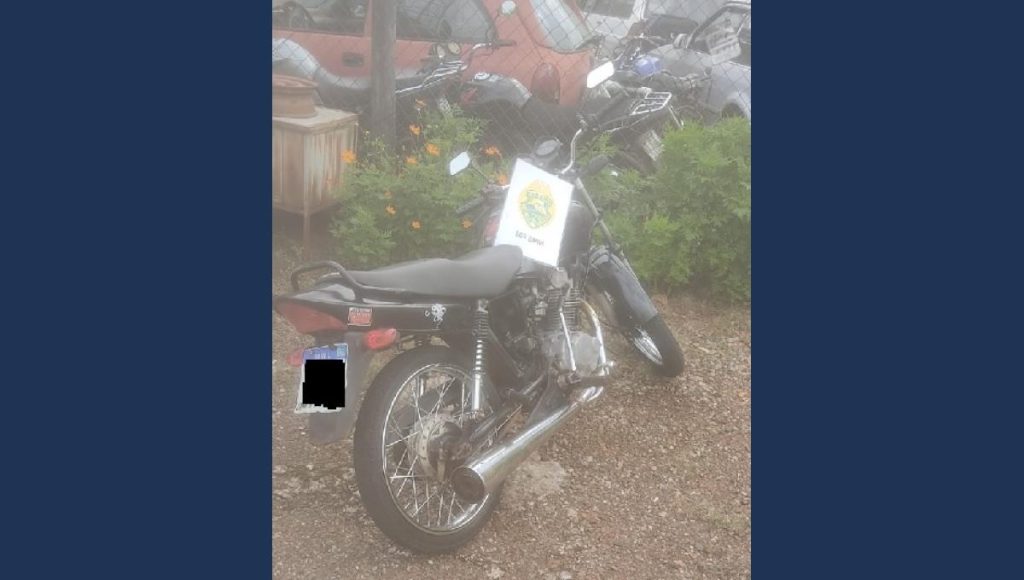 Ao ser identificado, verificou-se que o motociclista é menor de idade. A consulta ao sistema SESP Investigação revelou que a motocicleta, com a placa AOB3H09, estava com o licenciamento pendente e os retrovisores em posição irregular, virados para dentro.