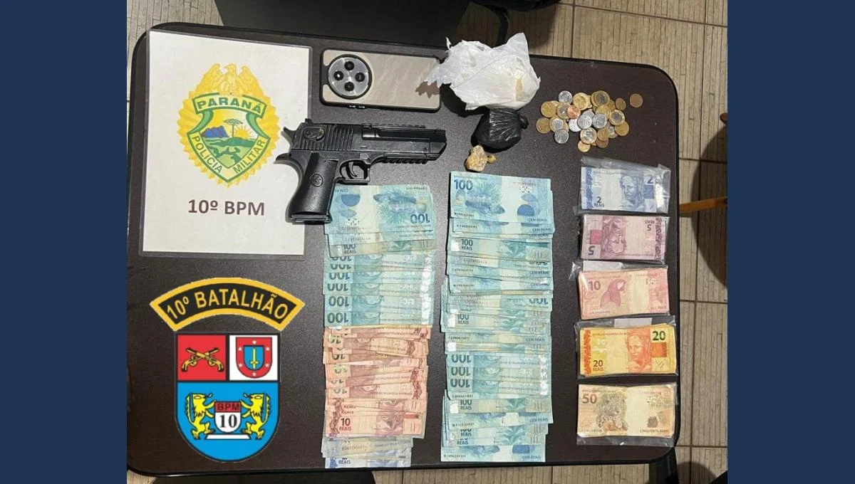Durante patrulhamento na Rua Angélica Tais Fraga, policiais flagraram o suspeito conhecido como “Perninha” — já preso anteriormente por tráfico — entregando algo a um homem em frente a uma conveniência. Ao receber voz de abordagem, ele fugiu para dentro de casa, mas foi detido no banheiro, onde havia uma porção de crack pronta para venda e embalagens plásticas.