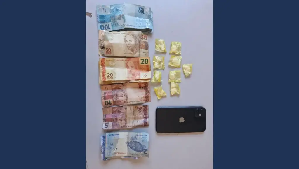 Na revista pessoal, os policiais localizaram nove porções de substância análoga à cocaína, fracionadas e embaladas para comercialização, além de R$ 463,00 de dinheiro em espécie. O entorpecente totalizou aproximadamente 9 gramas. Também foram apreendidos um aparelho celular e a motocicleta, recolhida ao pátio da 7ª CIPM para as medidas administrativas.