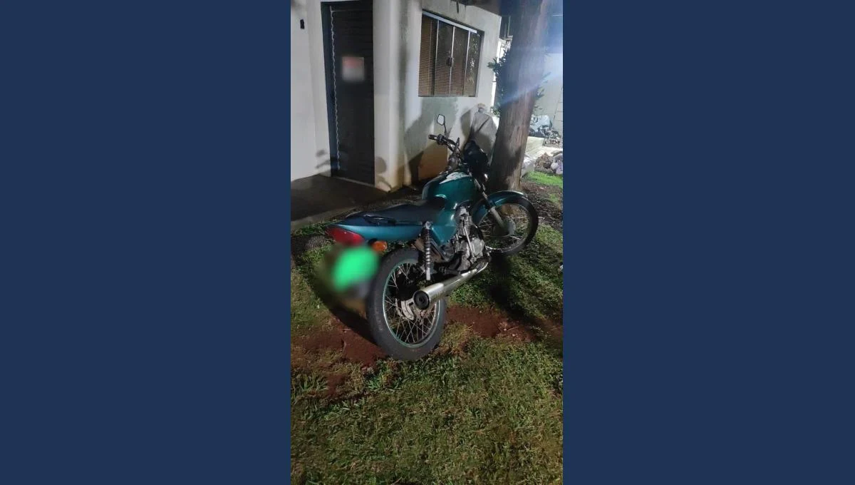 Na noite deste sábado (5), durante patrulhamento da Operação com Cães, uma equipe da Polícia Militar de Arapongas localizou uma motocicleta com alerta de furto estacionada em frente a uma residência na Rua Tangará, zona rural do município.