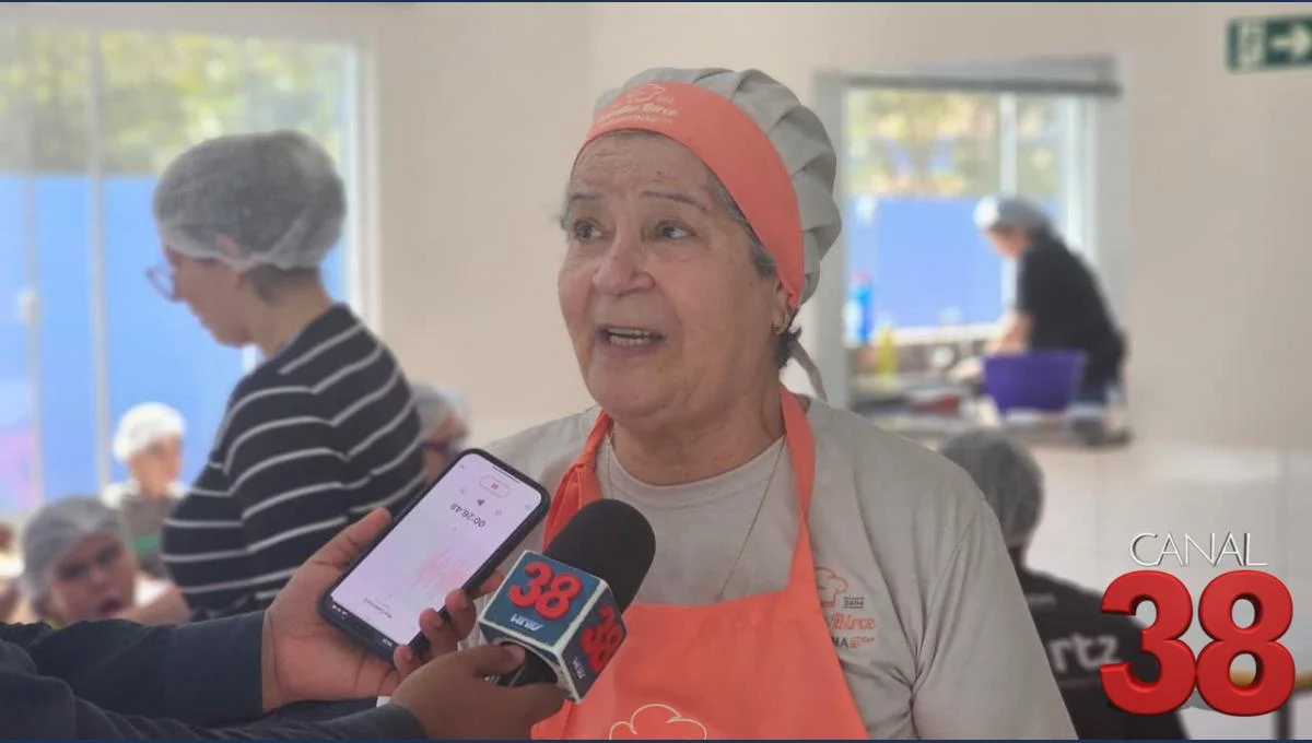 “Ah, eu trouxe a esfirrinha de carne, que eu gosto muito de fazer, já faço na minha cantina e as crianças amam. Na outra vez, fiz pãozinho de leite, que também faço para mim e minha família. Faço também pãozinhos de fermentação natural. Amo fazer essas coisas. Faz 22 anos que estou no Bom Jesus, antes era o colégio das irmãs. Eu gosto muito de trabalhar lá, adoro as crianças e os professores. É Deus que me dá essa força, porque já tenho setenta e quatro anos, vou fazer setenta e cinco. Deus me dá força para fazer tudo isso com muito amor, e eu faço com o maior prazer.”