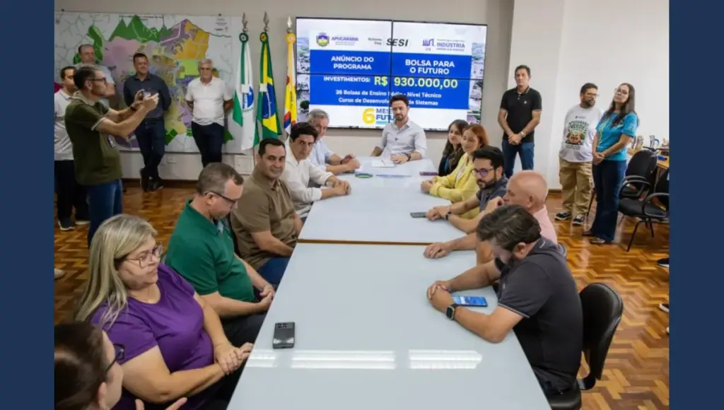 A Secretaria da Indústria, Comércio e Serviços da Prefeitura de Apucarana firmou nesta quinta-feira (29/01) parceria com o Colégio Sesi para ofertar Ensino Médio Técnico em Desenvolvimento de Sistemas a jovens de baixa renda que cursaram todo o ensino fundamental I na rede pública. A iniciativa integra o Programa Bolsa para o Futuro e prevê investimento municipal de R$ 930 mil, com a concessão de 36 bolsas integrais.