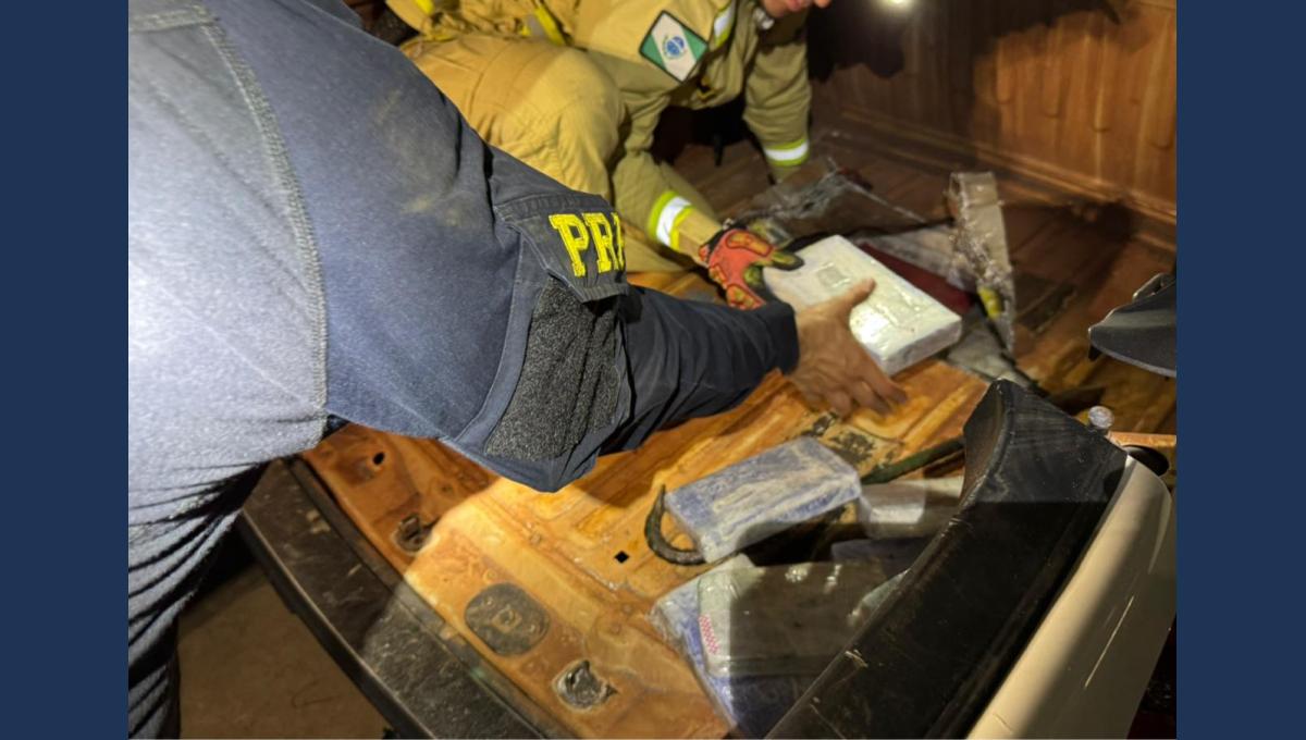 Droga estava escondida em compartimento oculto sob o assoalho; ação contou com apoio do Corpo de Bombeiros para acesso ao entorpecente