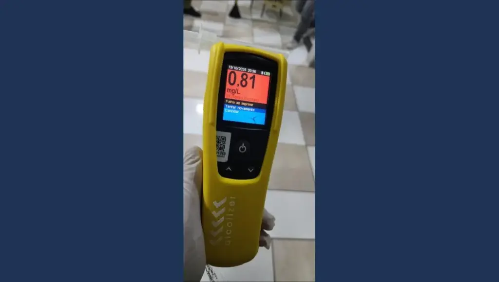 O condutor, que é morador de Apucarana, foi submetido ao teste do etilômetro, que registrou 0,81 mg/L de ar alveolar. Esse índice é considerado extremamente elevado e configura crime de trânsito, conforme o artigo 306 do Código de Trânsito Brasileiro (CTB).
