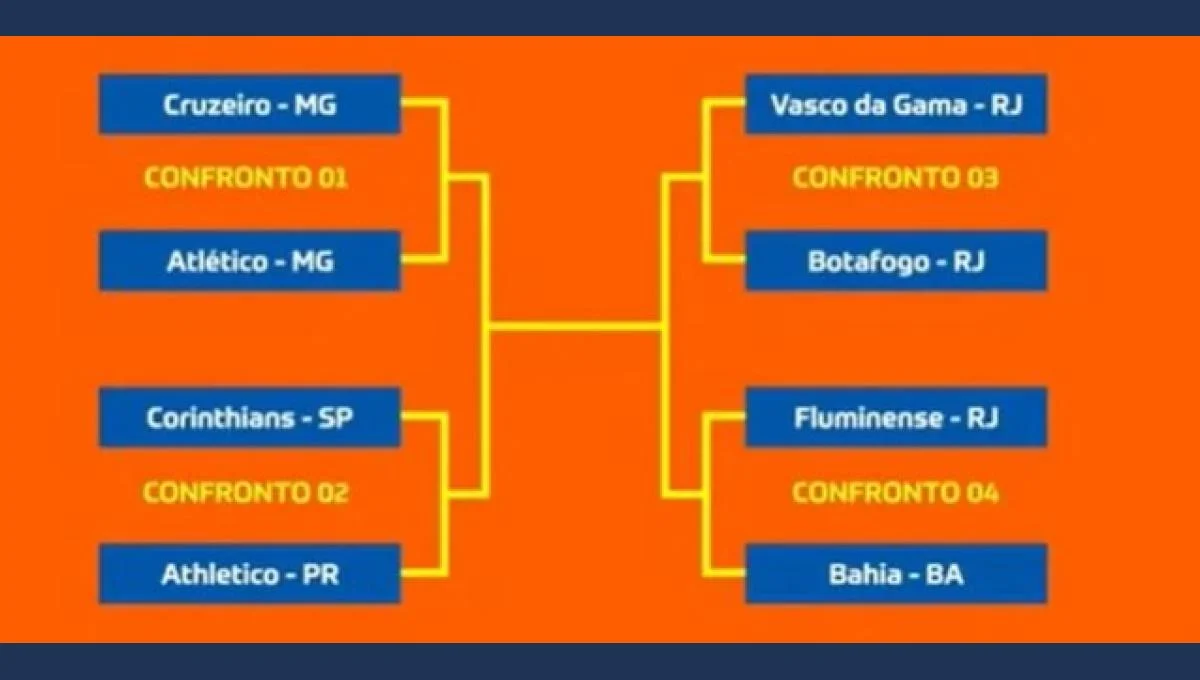 Pelo chaveamento, o vencedor do duelo mineiro entre Atlético-MG e Cruzeiro enfrentará nas semifinais o classificado de Corinthians e Athletico-PR. Do outro lado da tabela, quem avançar do clássico carioca entre Botafogo e Vasco enfrentará Fluminense ou Bahia.