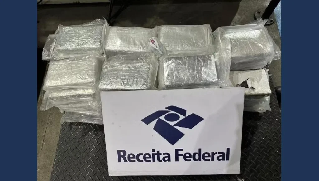 De acordo com a Receita, dentro da caixa havia duas malas, cada uma com duas mochilas com 46 pacotes da droga.