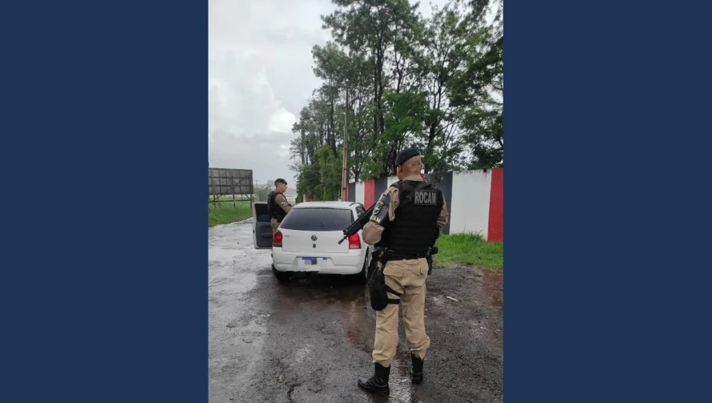 Ao avistar a viatura, o condutor demonstrou nervosismo e fechou os vidros do carro. Durante a verificação, os policiais constataram que o automóvel possuía placas no padrão Mercosul, porém, a consulta revelou que o veículo deveria estar com placas no modelo antigo e possuía pendências administrativas desde 2019.