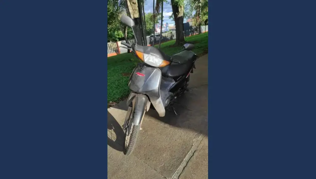 Durante patrulhamento de rotina, os policiais visualizaram uma Honda Biz C100 preta estacionada, com placa do município de Londrina em estado precário. Ao consultar o sistema, verificaram que a placa não possuía checagem válida, indicando possível clonagem.