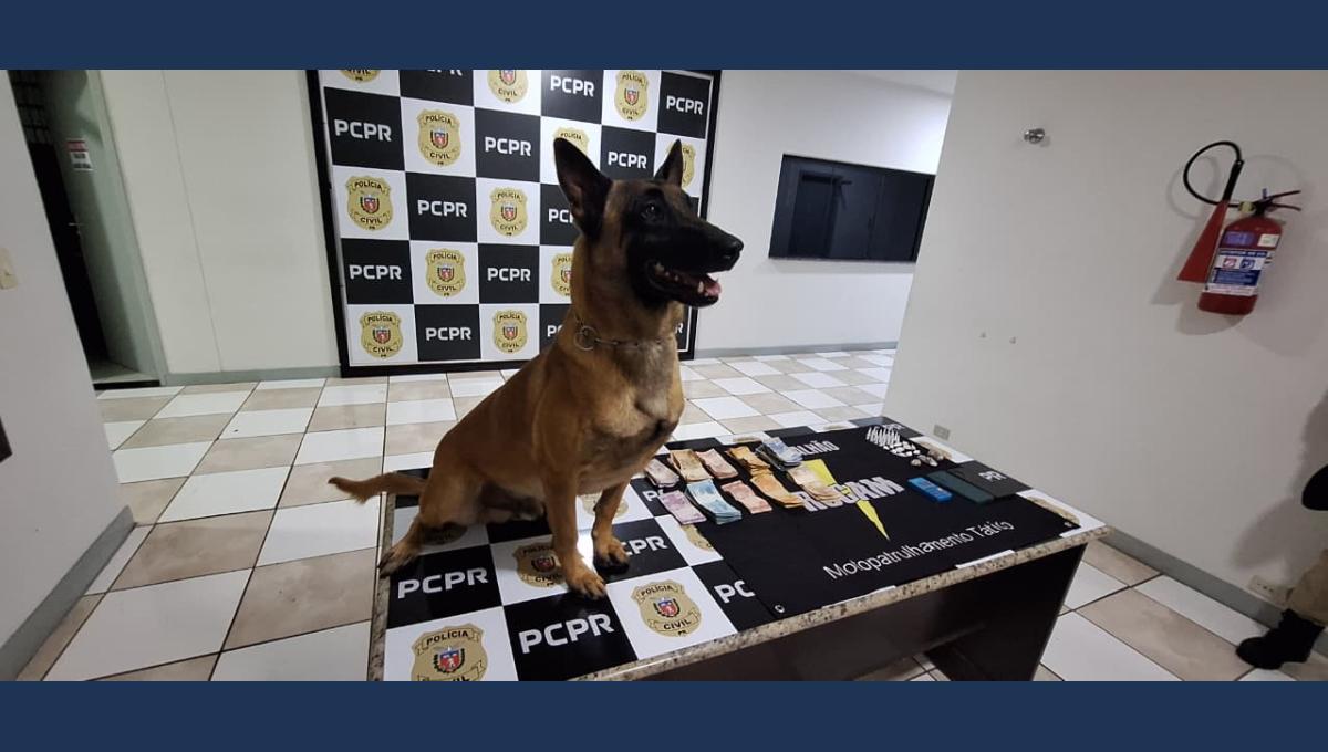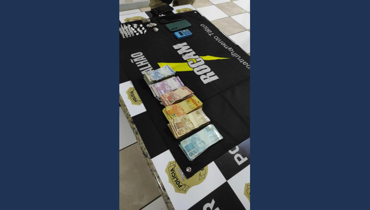 Uma ação conjunta das equipes da ROCAM e do Canil da Polícia Militar resultou na apreensão de drogas, dinheiro e na prisão de um homem suspeito de tráfico em uma conveniência localizada na Rua Alexandre Balan, no Parque Bela Vista, em Apucarana.