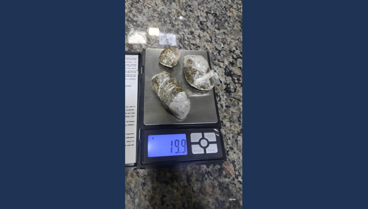 Durante as buscas, com o auxílio do cão farejador Buddy, foi localizada na conveniência uma porção de substância análoga à maconha. Questionado se havia mais entorpecentes, o próprio suspeito foi até a cozinha da residência, que fica nos fundos do comércio, e retirou de trás de um armário outra porção da mesma droga.