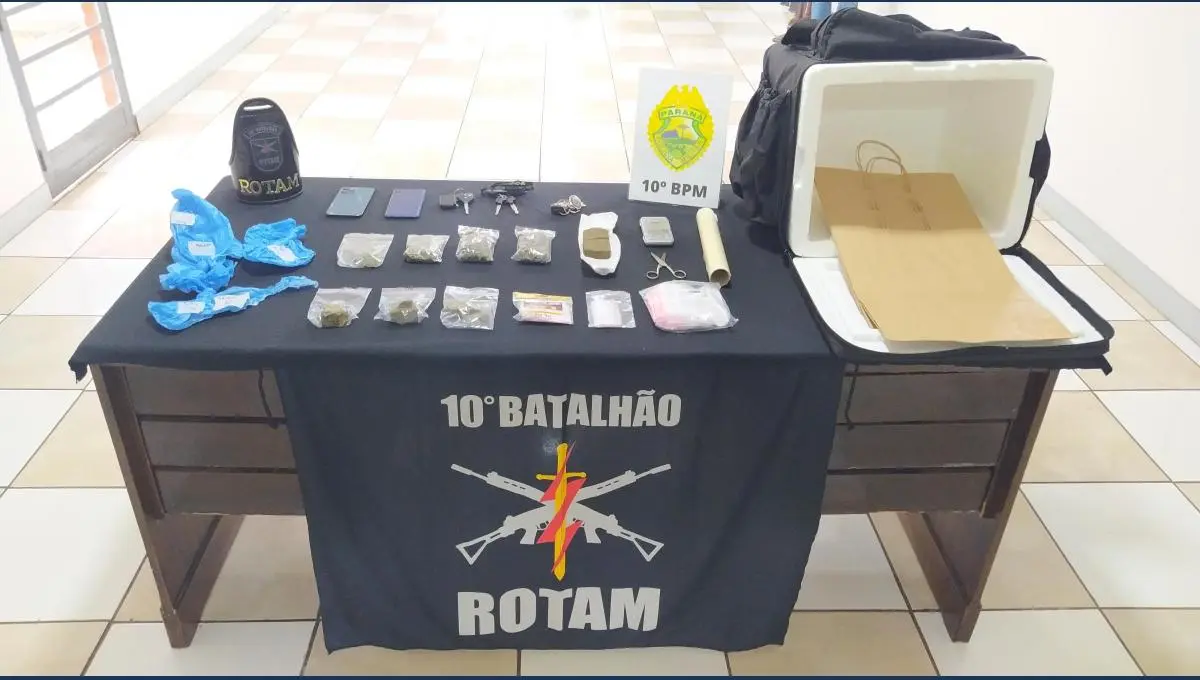 A operação resultou na apreensão de drogas, balança de precisão e veículos furtados em Maringá.