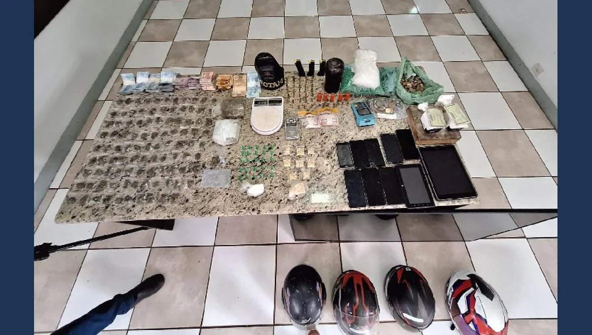 Durante a operação, a equipe da PM localizou e apreendeu cerca de 955 gramas de maconha, 73 gramas de cocaína e 92 gramas de crack, além de uma quantia de aproximadamente R$ 3.000 em dinheiro. Também foram encontrados três carregadores de pistola, cinco cartuchos de calibre 12, 33 munições de calibre 9mm, cinco munições de calibre .38, balanças de precisão, máquinas de cartão, câmeras de monitoramento além de outros objetos.
