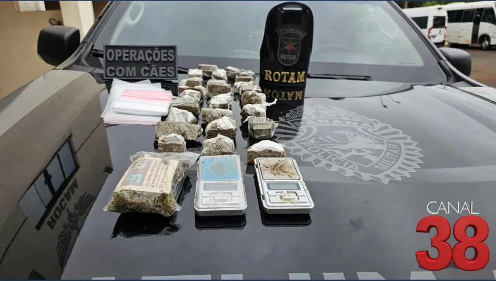 Durante as buscas, com o auxílio de cães farejadores, foram localizados cerca de 677 gramas de maconha e 44 gramas da flor da maconha, ambas preparadas para o consumo e a venda. As drogas estavam enterradas e acondicionadas em um local de difícil acesso.