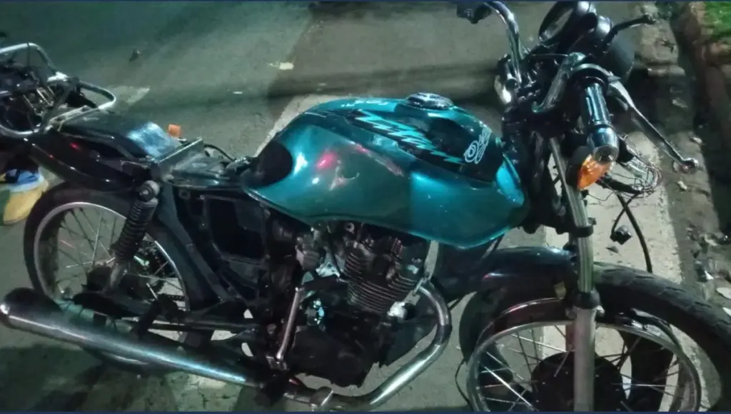 A polícia segue investigando a origem da motocicleta e as circunstâncias que levaram às adulterações constatadas.