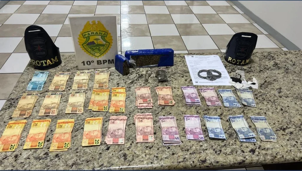 No baú da motocicleta a polícia encontrou um tablete de maconha. Ambos os envolvidos receberam voz de prisão e foram encaminhados à 17ª Subdivisão Policial (SDP) de Apucarana.