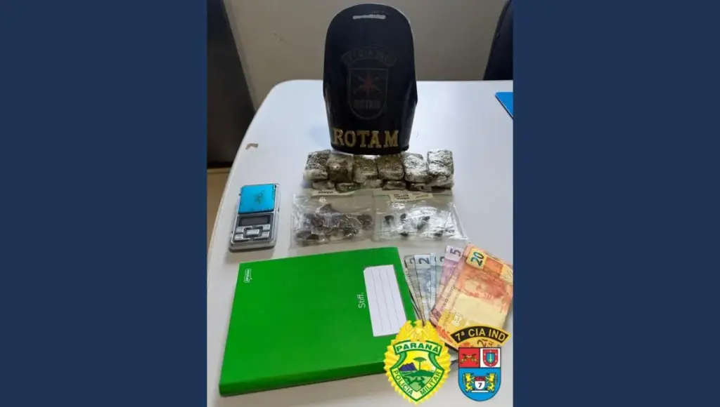 Na revista pessoal, foi encontrada certa quantidade de substância análoga à maconha. Questionado, o suspeito confirmou que havia mais entorpecentes no interior da residência. Em buscas no local, a equipe localizou outras porções de maconha, porções de substância análoga a haxixe do tipo “ice”, além de uma balança de precisão e um caderno contendo anotações relacionadas ao tráfico.