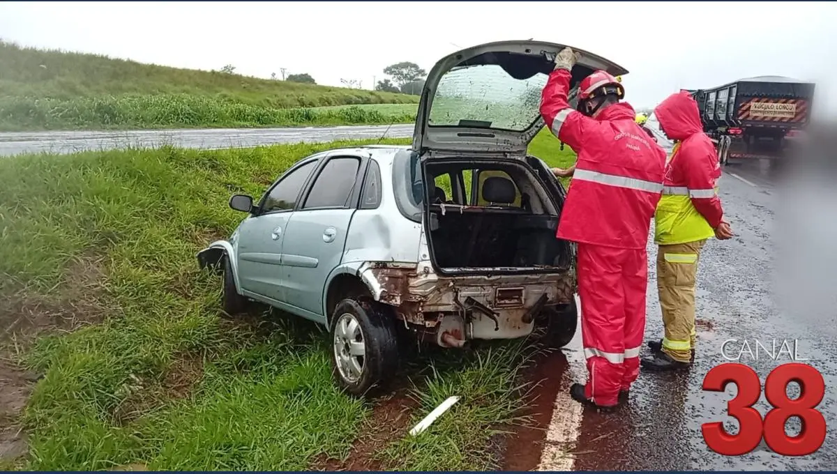 Um veículo Chevrolet Corsa, que seguia no sentido Cambira–Apucarana, saiu da pista e colidiu contra a canaleta central que divide as duas faixas da rodovia.