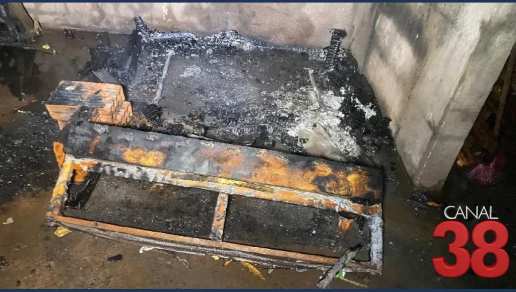 Chegando ao local, foi constatado que havia muito material acumulado dentro dessa residência, e nos fundos dela, próximo à mata, estavam queimando um colchão, uma cama e um sofá velho. Esse fogo corria o risco de se espalhar para a mata.