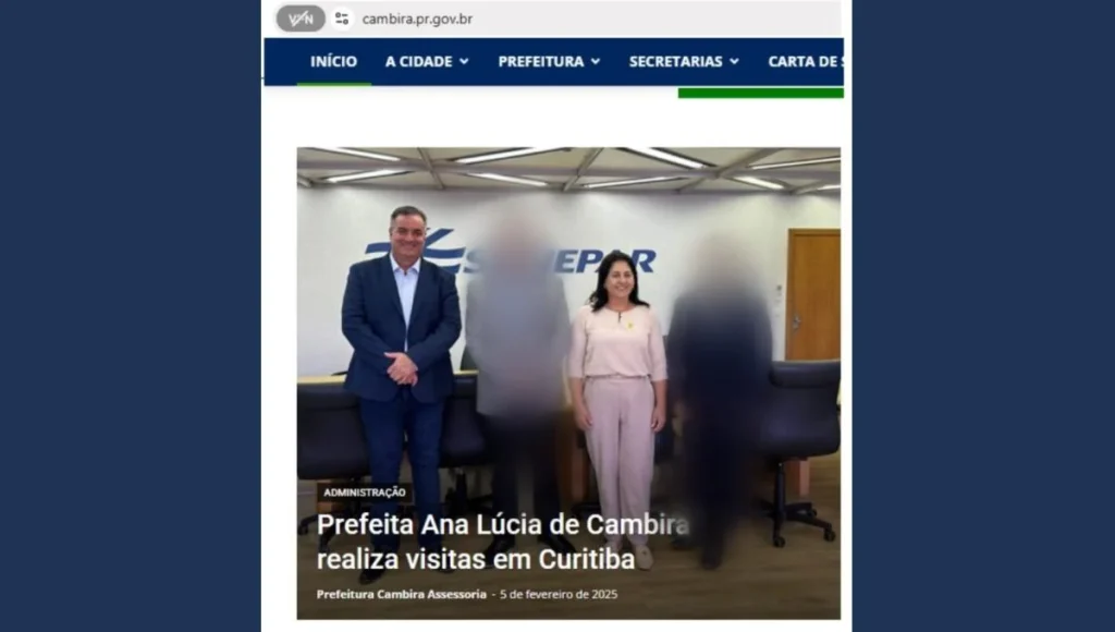 A prefeita de Cambira, Ana Lúcia, esteve recentemente em Curitiba para participar de reuniões e buscar recursos para o município. O que deveria ser uma série de compromissos institucionais em benefício de Cambira, no entanto, trouxe à tona uma prática questionável: o ex-prefeito de Cambira e atual secretário de Assuntos Estratégicos da prefeitura de Apucarana, Emerson Toledo Pires, participou das agendas com a prefeita com as despesas pagas pelos contribuintes de Apucarana. Veja o site da própria prefeitura de Cambira com matéria sobre jornalística com fotos da visita: https://www.cambira.pr.gov.br/prefeita-ana-lucia-de-cambira-realiza-visitas-em-curitiba/