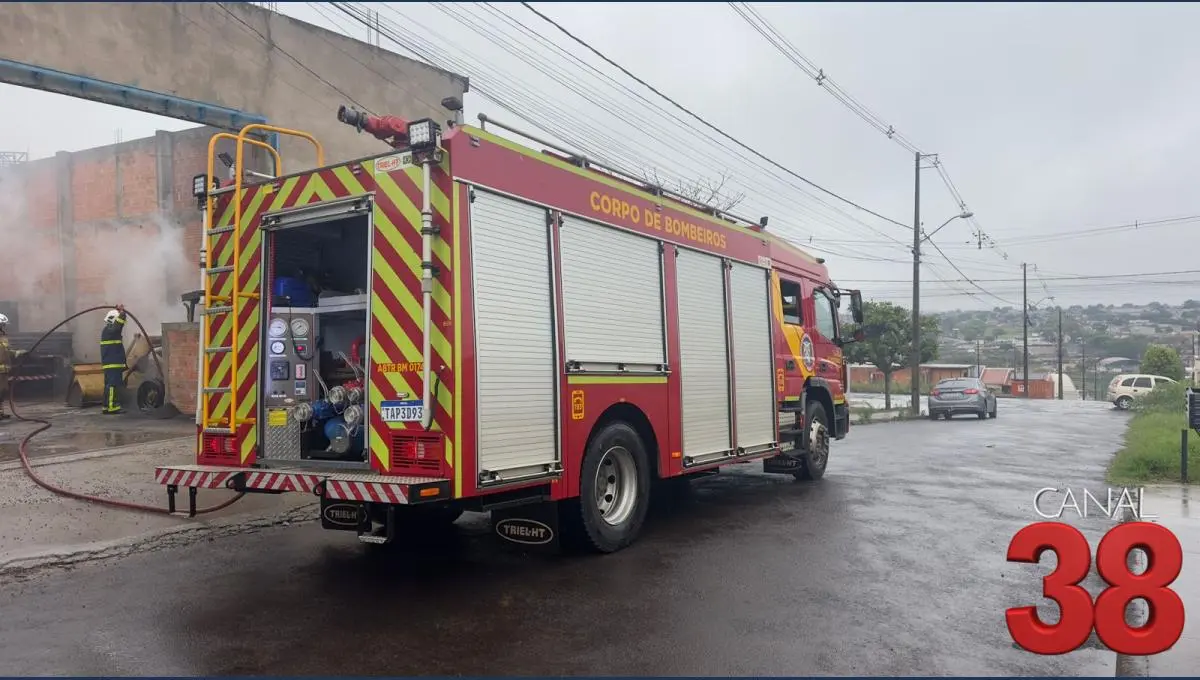 Um incêndio mobilizou equipes do Corpo de Bombeiros na manhã deste domingo (12) em Apucarana. As chamas atingiram um trator que estava estacionado no pátio de um barracão de material de construção, localizado na Rua Mirtes Terezinha de Souza, no Jardim Itália.
