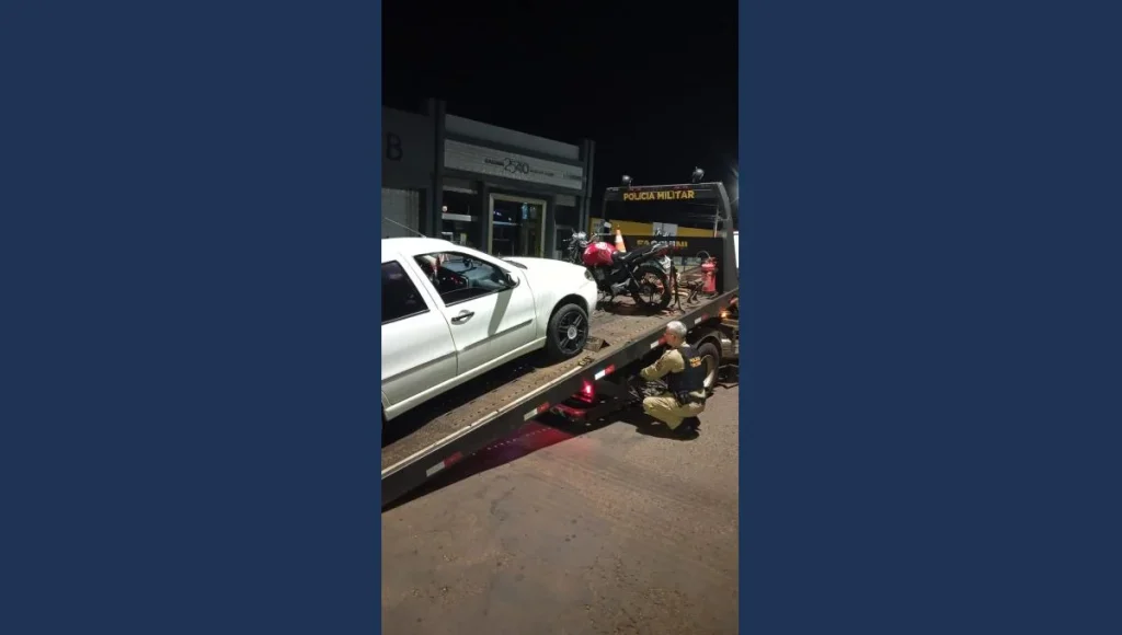 Durante patrulhamento de rotina por volta da meia-noite e meia deste sábado (12), a equipe da ROCAM de Apucarana avistou um Fiat Palio parado no meio da via, com o motor ligado, no Jardim Colonial 2. O veículo, que obstruía o trânsito na Rua Salvador Usso, chamou a atenção dos policiais por seu posicionamento e comportamento suspeito dos ocupantes.