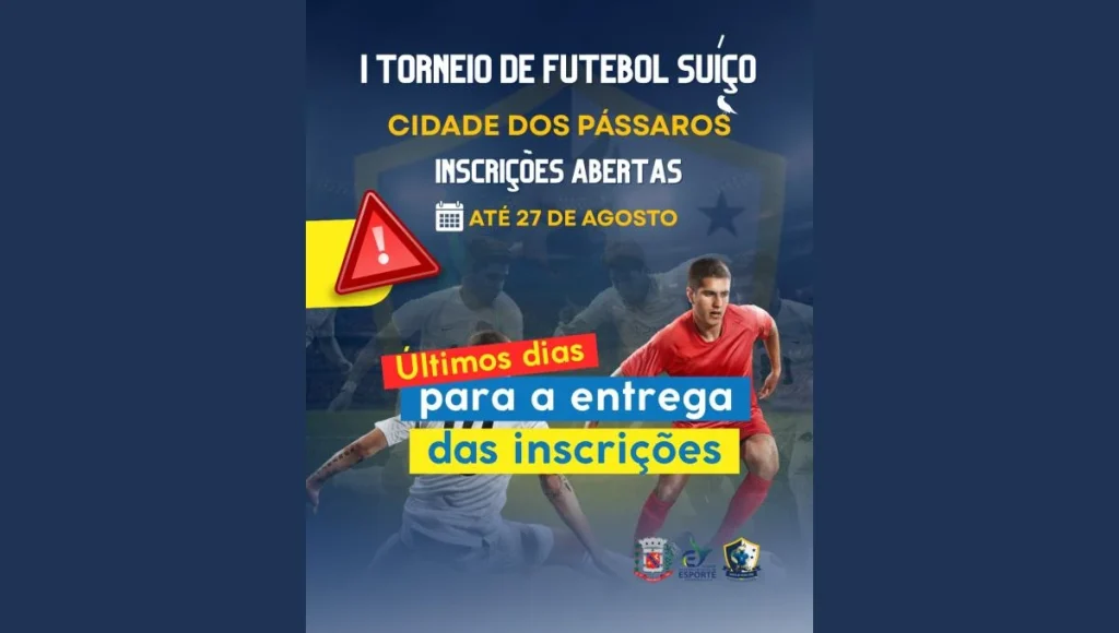 A Prefeitura do Município de Arapongas, por meio da Secretaria de Esporte, informa que seguem abertas as inscrições para a primeira edição do Torneio de Futebol Suíço Cidade dos Pássaros.