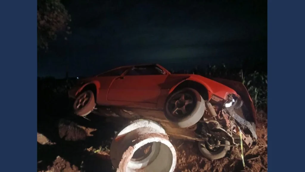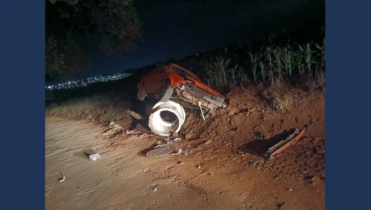 Durante a madrugada desta segunda-feira (05), um acidente inusitado foi registrado no Residencial Parque da Raposa, em Apucarana. Um veículo Ford Escort, de cor vermelha, colidiu contra um tubo de esgoto na Rua Antônio Bertasso, vindo a ficar encavalado sobre o anteparo.