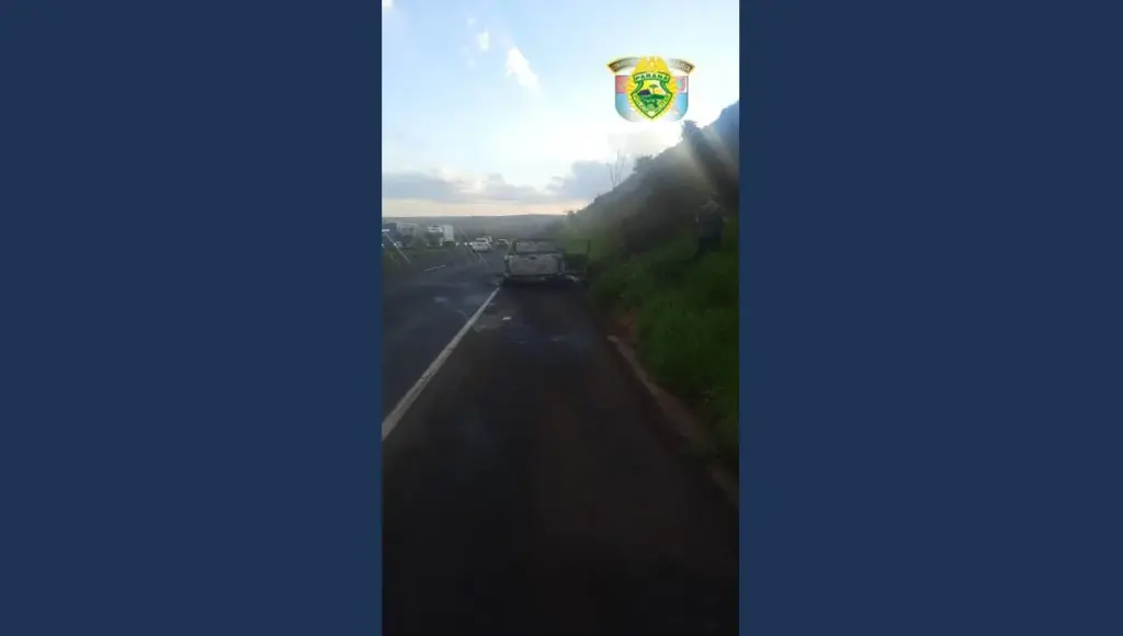 Na tarde de domingo (19), por volta das 17h45, a equipe do BPRv/CPE/2ª Cia/PPRv de Rolândia atendeu a um acidente de trânsito envolvendo um veículo que incendiou-se na PR-986, próximo ao km 04 + 600m, sentido Entroncamento da BR-369 a Arapongas.