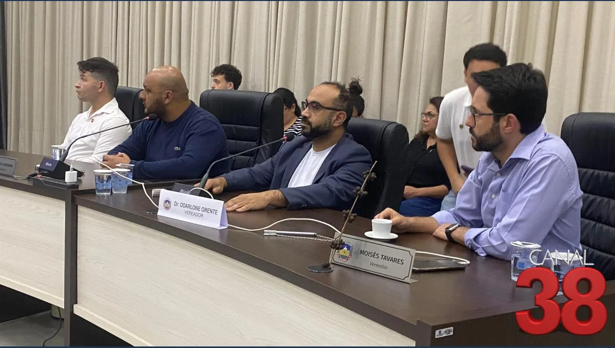 O vereador Thiago Cordeiro, depois de eleito com essa sessão específica, é o vereador legitimado a compor a segunda secretaria, então ele vai iniciar a sessão já na mesa executiva. Nós até — eu vi antes da sessão — estávamos com 12 cadeiras, não aumentou o número de vereador não, nós estamos com 11 vereadores, mas havia essa necessidade apenas pela logística. Agora ele já inicia a sessão ordinária sentado à mesa, junto com todos os eleitos legitimamente com os votos necessários para estar na mesa.