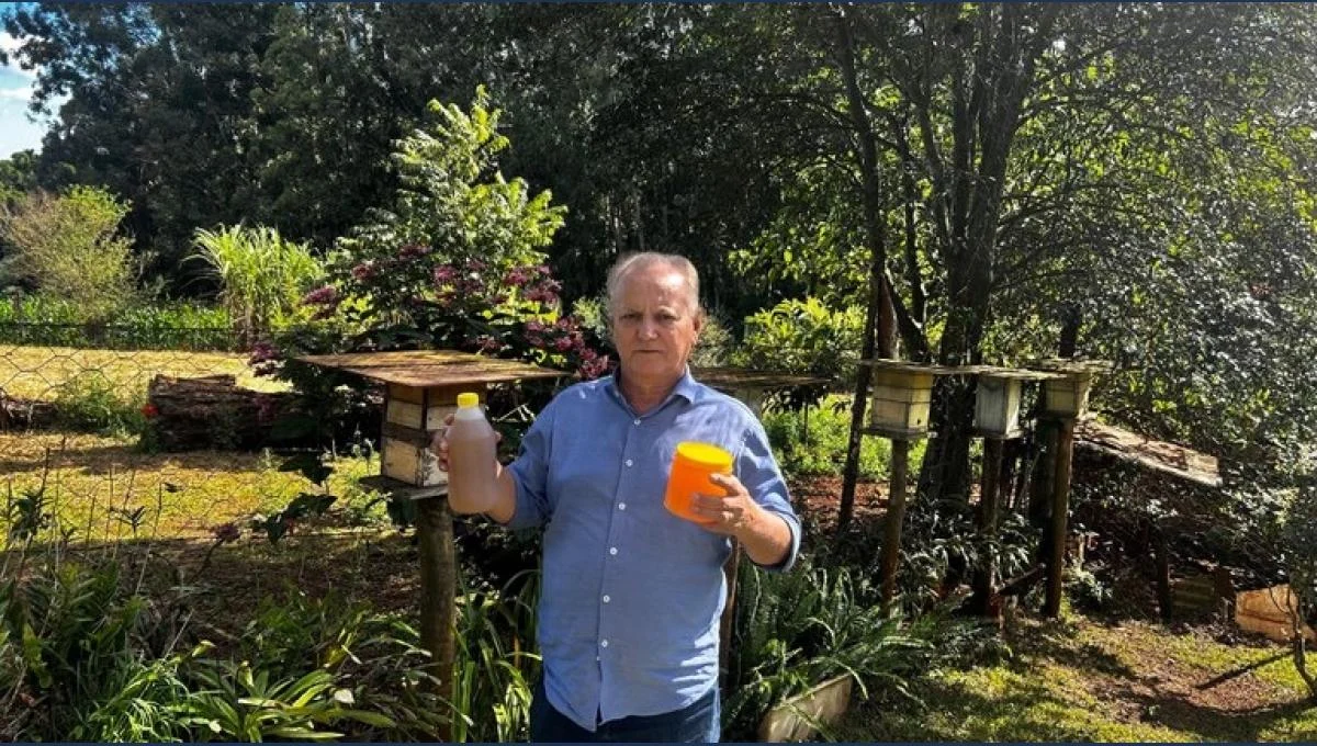 Luiz Vilas Boas realizou visita técnica à propriedade rural de Ademir Maldonado, referência na criação de abelhas nativas sem ferrão em Apucarana.