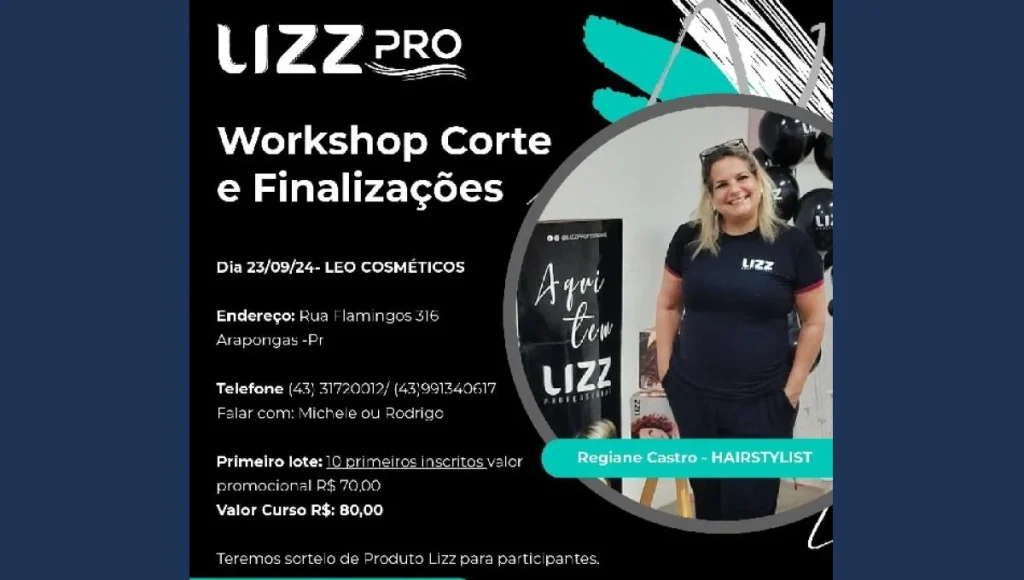 Durante o workshop, os participantes terão a oportunidade de aprender técnicas avançadas de corte e finalização com Regiane Castro, uma das hairstylists mais respeitadas da área. Além disso, haverá um sorteio de produtos LizzPro para os participantes.