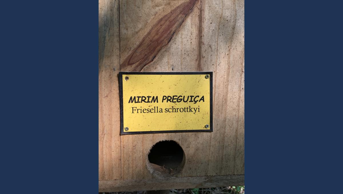 “Na pista superior, foi colocado uma caixa de mandaçaia, um totem para abelha solitária, em que só se colocam buraquinhos para a abelha fazer o ninho, e uma outra caixa de iraí. Então, eram duas em cima e esse hotel das solitárias. E, na pista de baixo eram três abelhas: jataí, abelha mirim droryana, se não me engano, e uma mirim-preguiça”, relata.